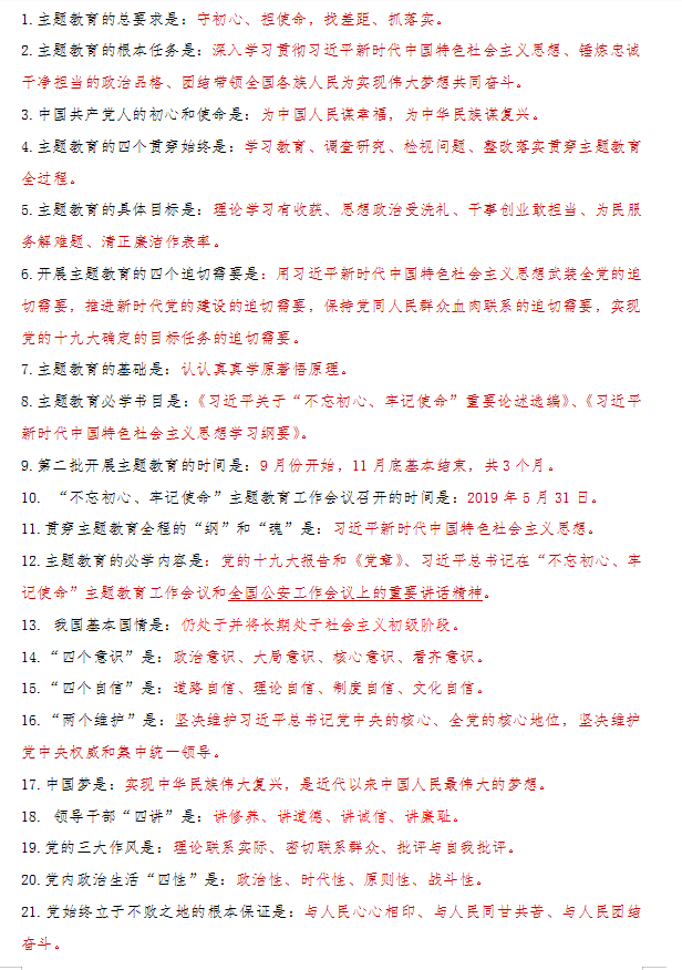 本月黨支部書記要求各位黨員做“不忘初心、牢記使命”主題教育應(yīng)知應(yīng)會(huì)測(cè)試題。
